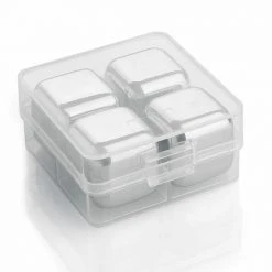 Cilio Kühlwürfel Steel, 4er Set. Vier wiederverwendbare Kühlwürfel aus Edelstahl im Set, inklusive Aufbewahrungs-Box.