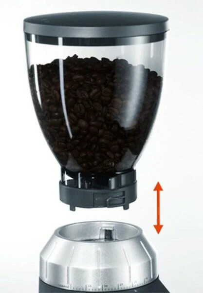 - Transparenter, entnehmbarer Kaffeebohnenbehälter mit Staubdeckel für ca. 350 Gramm Kaffeebohnen
