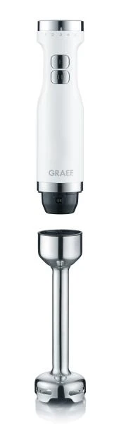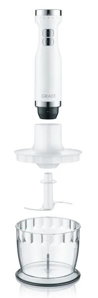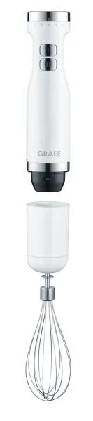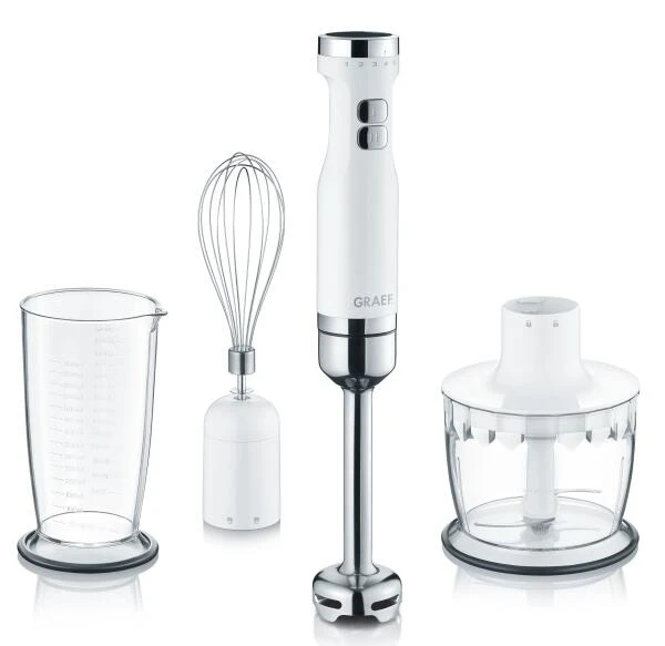 GRAEF Stabmixer HB 501 in weiß. Kompakter Stabmixer mit umfangreichem Zubehör. Inklusive Schneebesen, 500 ml Zerkleinerer und 700 ml Kunststoffbecher.