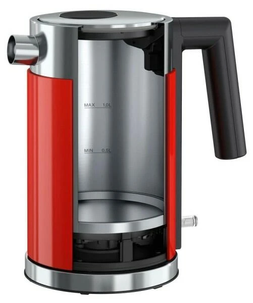 Der Edelstahl-Wasserkocher WK 403 von Graef bieten Außen modisches Design und Innen modernste Technik. Die Optik des Wasserkochers besticht durch mattierte oder hochglänzende Edelstahlbehältnisse, sowie schwarze oder rote hochglänzende Acryloberflächen – Ein echter Hingucker in jeder Küche. Durch den 360 Grad Zentralkontakt kann der Wasserkocher in beliebiger Position auf die Basisstation gesetzt werden. Der innere Behälter aus hochwertigem Edelstahl wurde durch das Prüfinstitut Hansacontrol auf Metallmigration aus metallischen Gegenständen geprüft und entspricht auf Basis der durchgeführten Prüfungen den Anforderungen. Der herausnehmbare, spülmaschinengeeignete Edelstahlfilter aus hochwertigem Edelstahl verfügt über ein feinporiges Edelstahlnetz, welches verhindert, dass Kalk und Schmutzpartikel aus dem Wasser in die Tasse gelangen. Auf beiden Seiten des Wasserkochers befindet sich eine Füllmengenmarkierung mit MIN (0,5 Liter) und MAX (1 Liter), wodurch das Befüllen und Ablesen der Wassermenge für Rechts- und Linkshänder möglich. Zusätzlich sorgt die integrierte Lift-Off Abschaltung dafür, dass sich das Gerät beim Abheben des Wasserkochers während des Kochvorgangs ausschaltet.