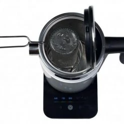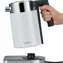 Der Wasserkocher WK501 von GRAEF wird zum zuverlässigen Begleiter für junge Familien sowie designorientierte, Kaffee- und Teegenießer. Als erster Wasserkocher auf dem Markt setzt er mit dem innovativen Vapo-Programm neue Standards in Sachen Multifunktionalität. Über die Basisstation mit intuitivem Touch-Display wird der Vaporisierungs-Vorgang gestartet. Das Babyfläschchen wird dabei verkehrt herum im mitgelieferten Korbeinsatz in den Wasserkocher gestellt. Schon nach ca. 4 Minuten ist das Fläschchen vaporisiert. Zum Erwärmen von Babykost wird das Gläschen ebenfalls im Fläschchenkorb mit der 40°C- und Warmhalte-Taste schonend auf die optimale Temperatur erwärmt.