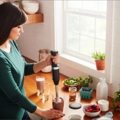 KitchenAid Kabelloser Stabmixer in matt schwarz. Der Mixer mit variablem Geschwindigkeitsregler. Mit wiederaufladbarem Akku und mit voller Bewegungsfreiheit in der Küche ohne Kabelsalat. Mit ca. 2h Akku-Laufzeit. Inklusive Zubehör.