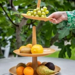 koziol Etagere BABELL in wood. Auf mehreren Etagen haben Sie genug Platz zur Präsentation von Gebäck, Obst und Fingerfood.