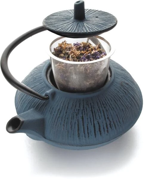 Lacor Teekanne aus Gusseisen in blau 1,1 L. Robuste und von Hand gefertigte Teekanne aus hochwertigem Gusseisen. Mit dieser Teekanne bleibt ihr Tee besonders lange heiß. Inklusive Teefilter aus rostfreiem Edelstahl.