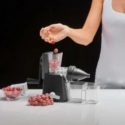 Der Slow Juicer von Lurch ist besonders geeignet für grüne Säfte aus Gräsern, Grünkohl und Co. Durch eine Getriebeübersetzung von 2:1 fällt das Entsaften besonders leicht. Dank der besonderen Geometrie ist ein effizienter Pressguttransport bei maximaler Saftausbeute garantiert. Da beim Kaltpressen keine Wärme entwickelt wird, gilt das Slow Juicen als besonders schonend.