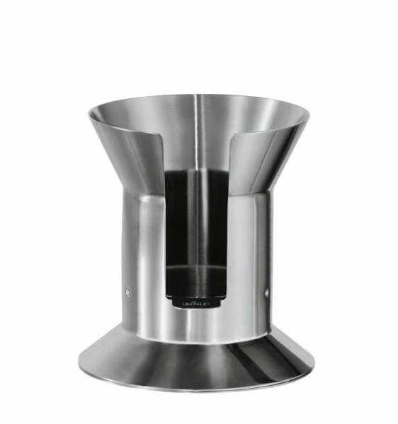 RÖSLE insbesondere diesen Kriterien gefolgt und hat ein Werkzeug, das in der Gastronomie und Patisserie vielfach zum Einsatz kommt, entscheidend verbessert: Für feine, dekorative Linien kann je nach Bedarf eine Düse mit vier oder sechs Millimetern Durchmesser verwendet und die genaue Dosierung der Durchflussmenge mit einem Verstellrad am Griff eingestellt werden. Der zuverlässige Mechanismus gewährleistet ein präzises, tropffreies Ergebnis. Der Kunststoffgriff liegt beim Anrichten gut in der Hand und garantiert ergonomisches Arbeiten. Mit einem Fassungsvermögen von 1,2 Litern ist der Trichter auch ein idealer Helfer für das schnelle und saubere Portionieren von Suppen. Damit Soßen und Suppen einfach nachgefüllt werden können, hat RÖSLE das von herkömmlichen Trichtern bekannte Funktionsprinzip weiterentwickelt und die Dosiereinheit seitlich, und nicht in der Mitte des Gerätes, platziert. Für sicheren Halt beim Nachfüllen oder zum Abstellen nach dem Gebrauch kann der Fondanttrichter in den mitgelieferten Halter mit Auffangbecher gestellt werden. Bei Bedarf wird der Trichter einfach zerlegt und in der Spülmaschine gereinigt.