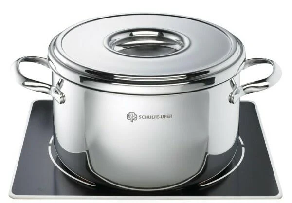 Schulte-Ufer Suppentopf Romana i. Der Design-Klassiker aus rostfreiem Edelstahl 18/10 in schwerer Ausführung mit induktionsgeeignetem protherm®-Kupferboden.
