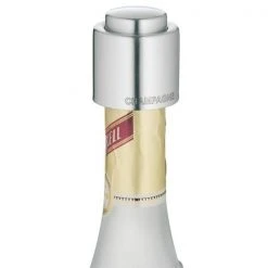 WMF Sektflaschenverschluss Clever & More. Champagner-/Sektflaschenverschluss verschließt durch einfaches Aufsetzen luftdicht. Durch leichten Druck auf oberen Knopf wieder leicht zu öffnen. Mit Schriftzug “Champagne “.