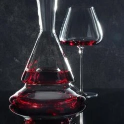 Zieher Dekanter/Karaffe Doppio. Schon beim Einschenken verteilt sich der Wein auf die beiden Ebenen des „Doppio“ Dekanters, wodurch ansprechende visuelle Akzente entstehen. Beinahe könnte man meinen, der Wein würde schweben.