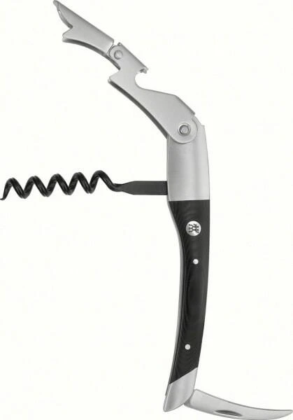 Das kompakt zusammenklappbare Kellnermesser aus Edelstahl und dem edlen Griff aus Micarta vereint drei Funktionen in einem formschönen Werkzeug: Folienschneider, Korkenzieher sowie ein Flaschenöffner für Kronkorkenverschlüsse. Mit seiner gehärteten, geschmiedeten und geriffelten Spindel mit Antihaftbeschichtung und einem zweistufigen Heber wird eine hervorragende Handhabbarkeit gewährleistet. Die Korken lassen sich dank optimaler Stütz- und Hebelwirkung perfekt heben und herausziehen. In seiner charakteristischen Gestaltung vereint das Kellnermesser Classic ebenfalls die drei Funktionen für das Schneiden der Folie, das Ziehen des Korkens und das Öffnen von Kronkorken. Der Micarta-veredelte Griff liegt immer perfekt in der Hand und ist umfasst von mattiertem rostfreiem Edelstahl. Der flexible zweistufige Heber macht den Einsatz besonders spielerisch.